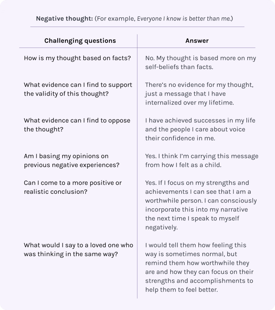 The following activity can help you challenge and replace negative self-talk.