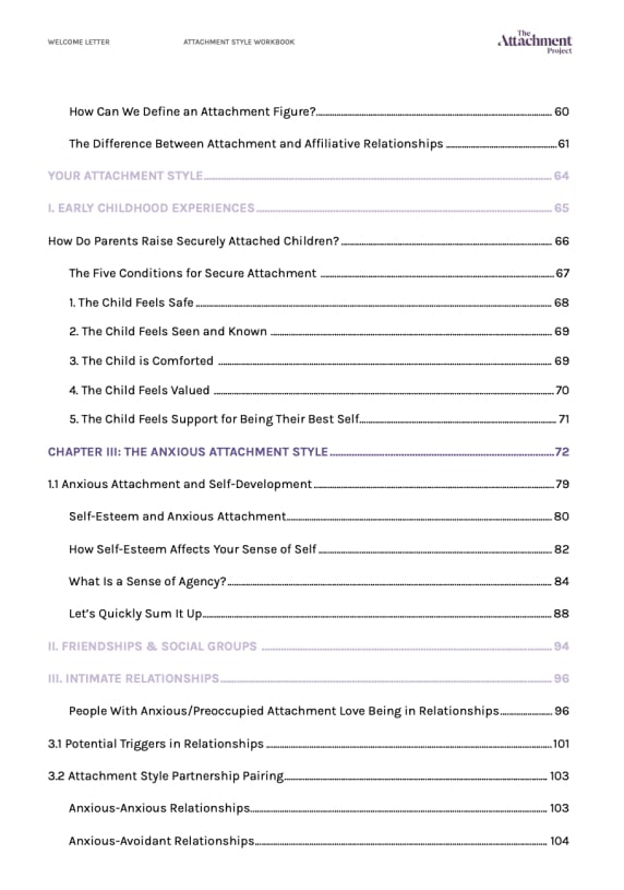 Everyone’s journey to secure attachment is unique, and that’s why we created our Anxious Attachment Digital Workbook and Ultimate Workbook. They help you understand your personal experience of the anxious attachment style in the following ways: