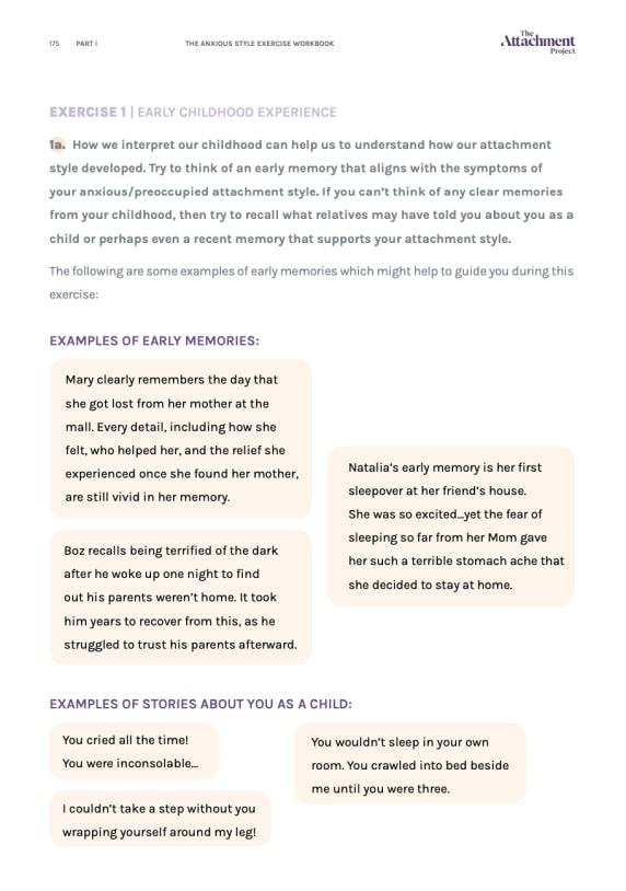 Everyone’s journey to secure attachment is unique, and that’s why we created our Anxious Attachment Digital Workbook and Ultimate Workbook. They help you understand your personal experience of the anxious attachment style in the following ways: